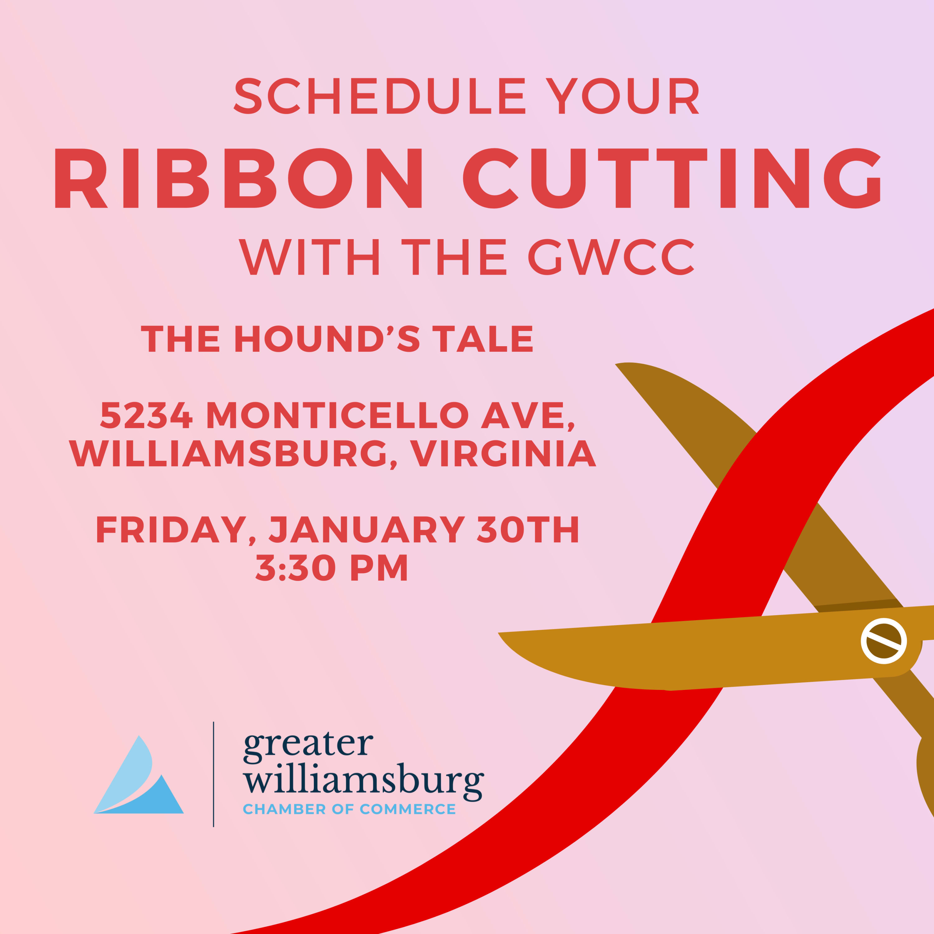 Join the Greater Williamsburg Chamber of Commerce for a Ribbon Cutting at the Hound's Tale as we celebrate the grand opening of its new location! The ribbon will be cut at 3:30PM at 5234 Monticello Ave, Williamsburg, Virginia 23188, United States.