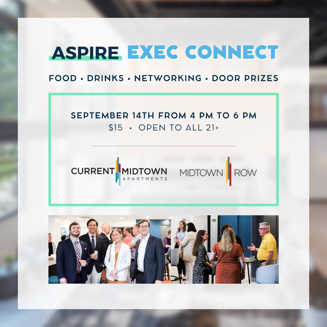 The ASPIRE Young Professionals are hosting an Exec Connect networking event on Thursday, September 14th from 4 to 6 PM at the Current Midtown Clubhouse! Open to all 21 and up, the Exec Connect is part of ASPIRE's Mentorship Program, connecting young professionals of the Chamber with local business leaders and executives for career development and guidance. Exec Connect attendees will enjoy hors d'oeuvres, two drink tickets, door prizes, and networking with peers and potential mentors!