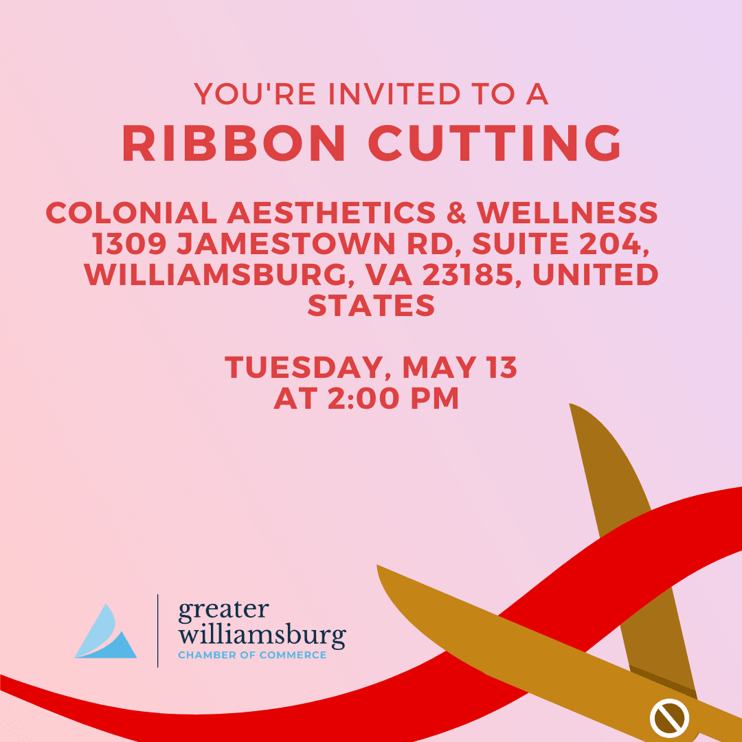 Join the Greater Williamsburg Chamber of Commerce for a Ribbon Cutting Ceremony at Colonial Aesthetics & Wellness — where beauty, wellness, and personalized care come together in the heart of Williamsburg!