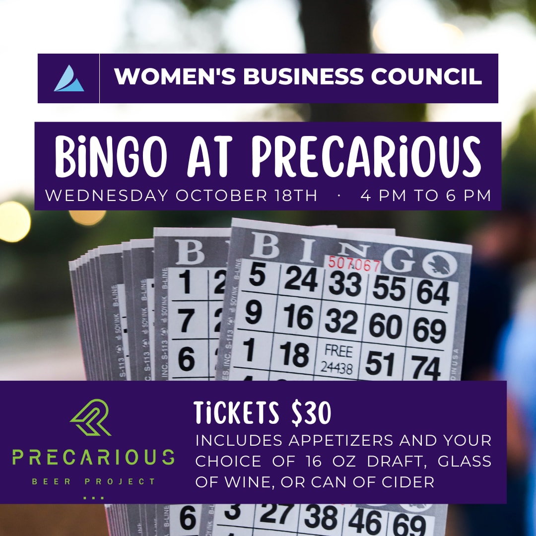The Women's Business Council is hosting Bingo Night at Precarious Beer Hall on Wednesday, October 18th from 4 to 6 PM. Tickets are $30 for members, which includes bingo, appetizers, one drink ticket for beer or wine, and prizes for the bingo winners. A cash bar will also be available. Precarious Beer Hall is located at 110 S. Henry St.