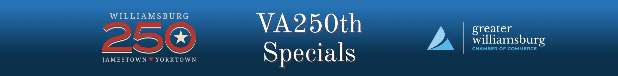 When members of the Greater Williamsburg Chamber have special discounts and coupons to celebrate the VA 250th, you'll find them here. Browse current offers below!